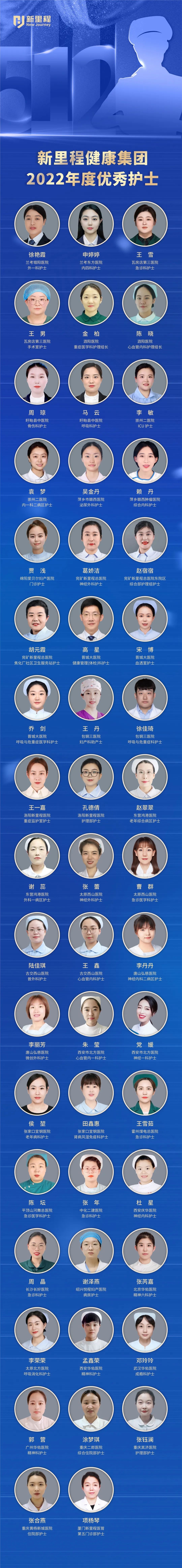 西安市北方医院急诊科护理团队和尹兴琴分别被西安市卫健委评为2023年度优质护理工作先进集体和先进个人;唐山弘慈医院赵金被唐山市卫健委评为2022-2023年优秀护士;霍州煤电总医院闫媛、陈望鸽、宋诚茹、李翠萍、赵振红、武艳会、吴海燕、姚姗姗、武怡芳、闫新丽、李媛媛、付荣荣、袁芳萍、续天玲、杨霞、刘桂荣、刘晓慧、刘爱萍、宋芳、张焕梅、范莹莹、高彩虹、王桂莲、逯华平、杜慧芳、杨芳芳、孟彩霞、柴玉勤、范慧、郭燕、马金金、李英英、张艳凤和乔锐锐被临汾市卫健委评为2023年“平阳最美护士”;重庆金易医院妇产科护理团队和李林、张杭分别被重庆市渝北区卫健委评为2022-2023年“优质护理服务示范集体”和“优秀护士”;重庆盛景医院魏华云被重庆市南岸区卫健委评为2023年优秀护士。